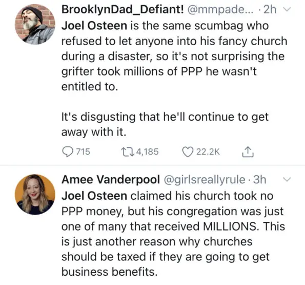 The country is still in the midst of a pandemic and millions of Americans have been financially affected with loss of employment and businesses closing down at an alarming rate. So when Houston, TX pastor Joel Osteen of Lakewood Church reportedly received millions to keep his organization afloat, critics on Twitter chimed in, slamming Osteen and calling him a “grifting scumbag”.