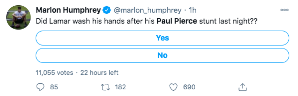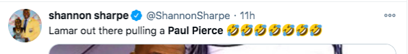 Even though Lamar Jackson has denied taking a bathroom break during his time off the field the damage has already been done. Many fans wasted no time in poking fun at both him and Paul Pierce on Twitter.