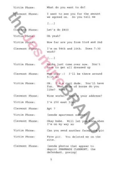 TheJasmineBRAND obtained exclusive court documents, detailing more information. According to court docs, on the evening of January 31, 2017, Shannade Clermont and the victim allegedly agreed to meet up for sex at the victim’s home in New York at around 5:30 pm.