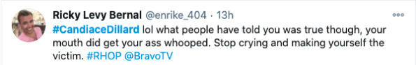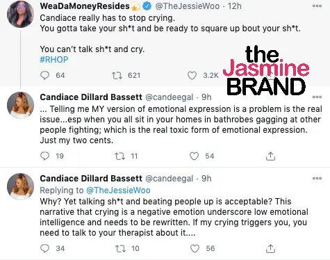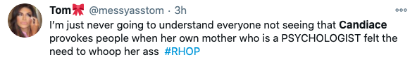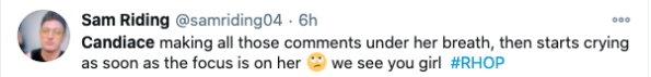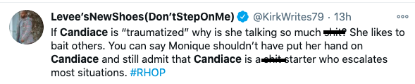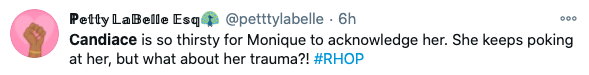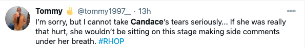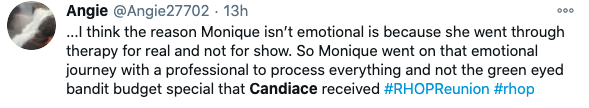 Monique Samuels wasn’t the only one who didn’t participate in a pity party for Candiace Dilliard, though. Twitter users seemingly placed the blame on Candiace for provoking the drama but getting emotional afterwards to play victim. Read some of the comments below.