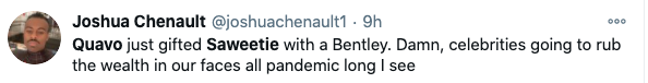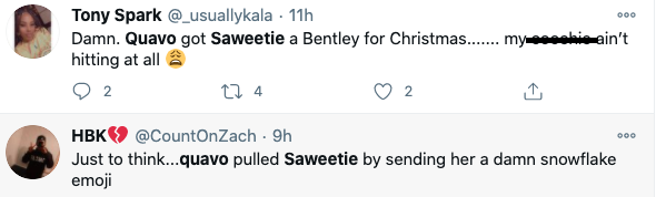 Quavo bought Saweetie a Bentley for Christmas, maybe I do need a glacier boy pic.twitter.com/AcFEGWpFH5