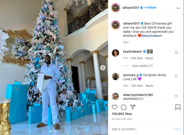 Gucci Mane, born Radric Delantic Davis, gave the world a glimpse of his newborn son Ice Davis. The ‘Both’ rapper shared an image of himself with his son surrounded by gifts. In the caption of the photo, he thanked his wife, Keyshia Ka’oir Davis, for the