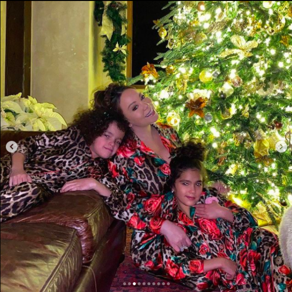 Mariah Carey appeared to be very relaxed this Christmas as she posed against a sofa with her adorable twins Moroccan Scott Cannon and Monroe Cannon.