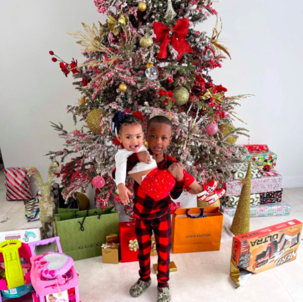 Yung Miami, born Caresha Romeka Brownlee, uploaded an image of her two beautiful children to her Instagram page. The pair seem to be standing in front of their Christmas tree filled with many gifts underneath.