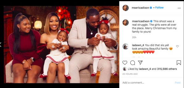 Former Love and Hip-Hop Atlanta cast member Erica Dixon shared that her family’s Christmas shoot was a little difficult due to her twin baby girls.