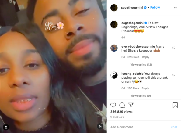 Recently, both Sage The Gemini and Supa Cent have acknowledged their love for one another on their IG pages.