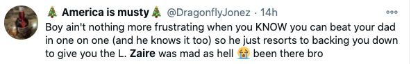Twitter users had a lot to say after watching the reaction of Zaire lose the battle to his famous dad. Read some of the comments below.