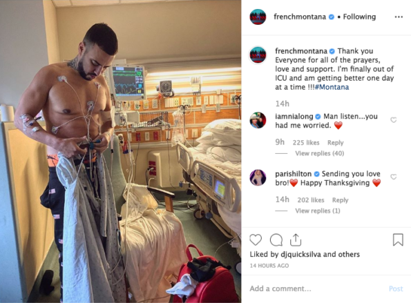 It’s been a little more than a year since rapper French Montana was released from the ICU. He shared the news on social media, uploading an image of himself standing in a hospital room taking off his hospital gown, with medical cords attached to his chest and arms. He captioned the image,