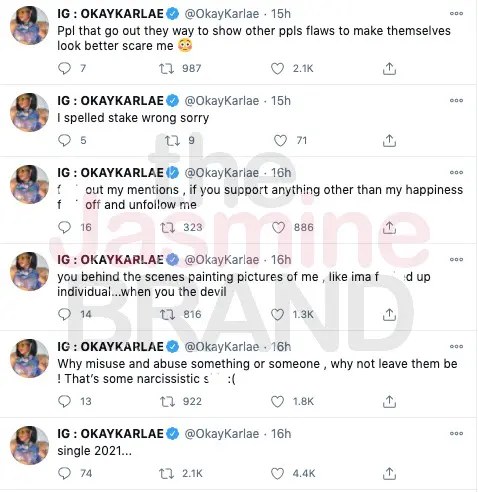 Original Story (Dec. 28th): It may be the end of the road for rapper Young Thug and his longtime girlfriend, turned fianceè, Jerrika Karlae. The pair who began their relationship starting off as friends in 2014 have publicly seen their highs and lows, but now Jerrika has taken to her Twitter to share some cryptic messages that let’s us know the end might be near.