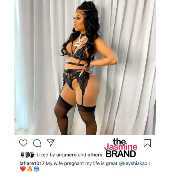 Keyshia Ka’oir shared a photo of her cradling her baby bump with the caption: