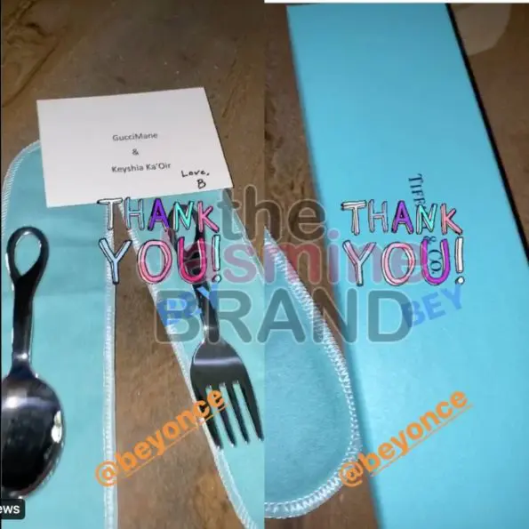 Keyshia Ka’oir also shared photos of the gifts that Beyonce gave her as well, which were a silver fork and spoon set from Tiffany & Co. The gift retails for $250.