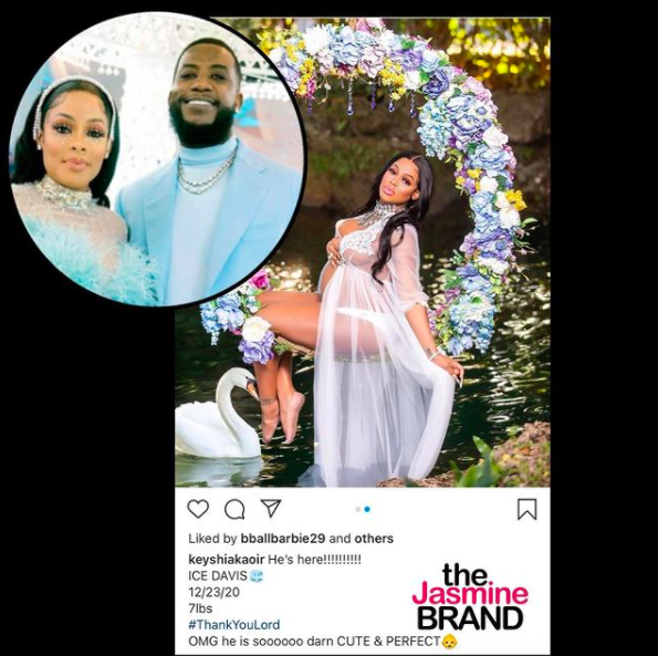 Keyshia Ka’oir is sharing the first photos of her son Ice Davis with rapper Gucci Mane. The sweet post shows his cute little hands and chin, but not his face.