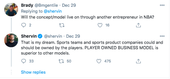 “That is my dream. Sports teams and sports product companies could and should be owned by the players. PLAYER OWNED BUSINESS MODEL is superior to other models.”