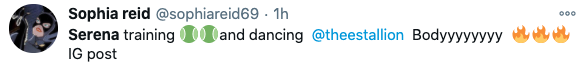 In an Instagram post showing the superstar athlete training, she smoothly transitioned into the popular “Body ody ody” dance accompanied by rapper Megan Thee Stallion’s “Body” song.