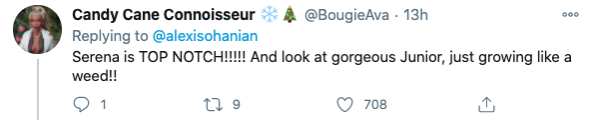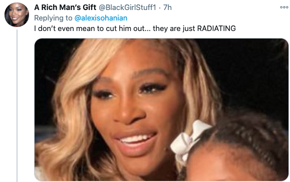 Serena is trending on Twitter for more than just her dance moves on the court, though. Her husband Alexis Ohanian Sr. released a few photos online of his family showing a stunning Serena rocking a new blonde hair color and a fitted dress.