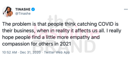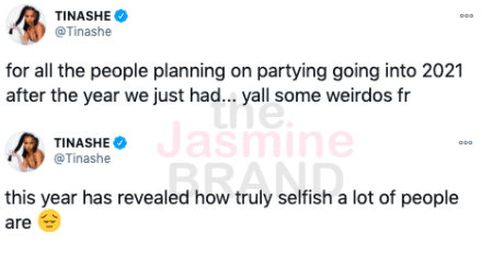 This isn’t the first time Tinashe has spoken about COVID-19’s impact on holiday celebrations.