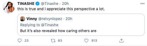 Tinashe continued on New Year’s Eve Thursday and spoke on the COVID-19 pandemic: