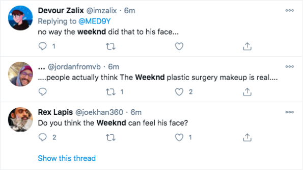 What are your thoughts on The Weeknd’s new facial features? Let us know in the comments.