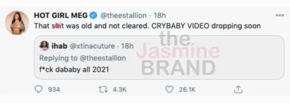 “That sh*t was old and not cleared. CRYBABY VIDEO dropping soon”