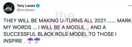 “THEY WILL BE MAKING U-TURNS ALL 2021 …… MARK MY WORDS … I WILL BE A MOGUL .. AND A SUCCESSFUL BLACK ROLE MODEL TO THOSE I INSPIRE .”