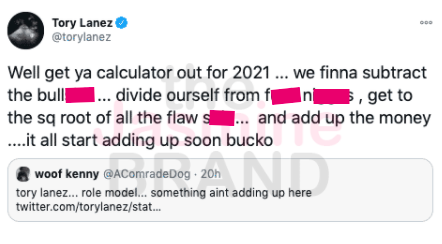 “Well get ya calculator out for 2021 … we finna subtract the b*llsh*t … divide ourself from f*ck n*ggas , get to the sq root of all the flaw sh*t … and add up the money ….it all start adding up soon bucko”