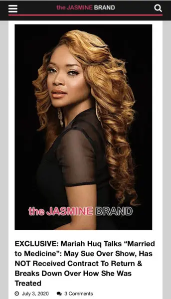 The now-former “Married To Medicine” star previously told theJasmineBRAND in an exclusive interview that she never received a contract for the upcoming 8th season, despite serving as a creator for the show. She added: