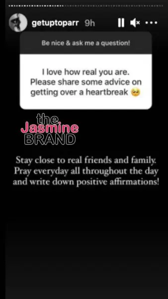 Sabrina Parr answered questions on her Instagram story about her dating life and staying positive during a breakup.