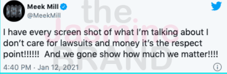 “I have every screen shot of what I’m talking about I don’t care for lawsuits and money it’s the respect point!!!!!! And we gone show how much we matter!!!!”