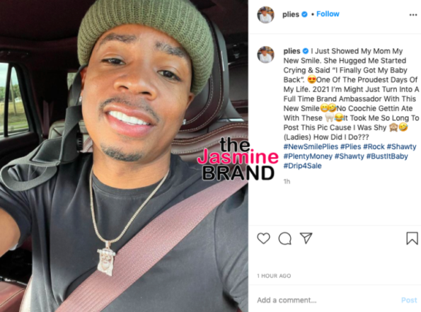 “I Just Showed My Mom My New Smile. She Hugged Me Started Crying & Said “I Finally Got My Baby Back”… One Of The Proudest Days Of My Life. 2021 I’m Might Just Turn Into A Full Time Brand Ambassador With This New Smile… No C—hie Gettin Ate With These …It Took Me So Long To Post This Pic Cause I Was Shy … (Ladies) How Did I Do???#NewSmilePlies#Plies#Rock#Shawty#PlentyMoney#Shawty#BustItBaby#Drip4Sale“