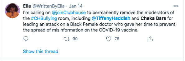 “Now People on clubhouse saying I am bullying because I just told the truth.”
