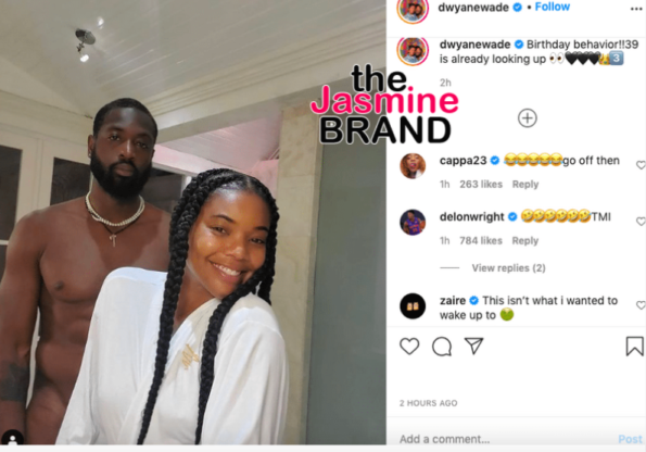 Dwyane Wade’s birthday behavior got a little risqué. He shared a photo posing with his wife, actress Gabrielle Union, in what appears to be nothing but his birthday suit as he brought in his 39th birthday.
