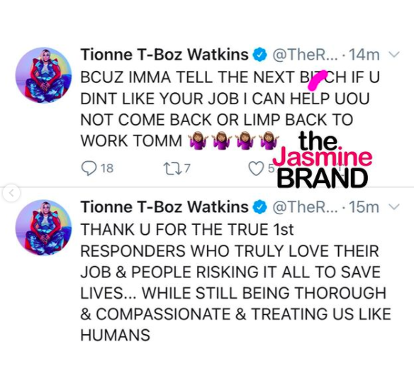 Singer Tionne ‘T-Boz’ Watkins has taken to social media to air out her grievances about a recent encounter with first responders.
