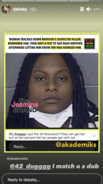 DaBaby & 42 Dugg Seemingly Agrees To Help Bail Woman Out From Jail Who Murdered The Man Accused Of Killing Her Younger Brother