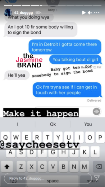 42 Dugg also shared a text message that seems to be between him and DaBaby. In the text, the pair of rappers are trying to finalize details on bailing Coppage out of jail.