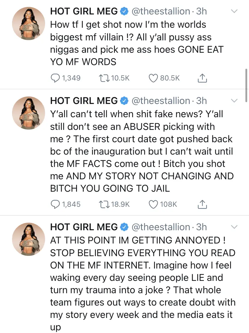 Megan Thee Stallion Says “B*tch You Shot Me & You’re Going To Jail”, As She Shoots Down False Claims That Tory Lanez Charges Were Dropped