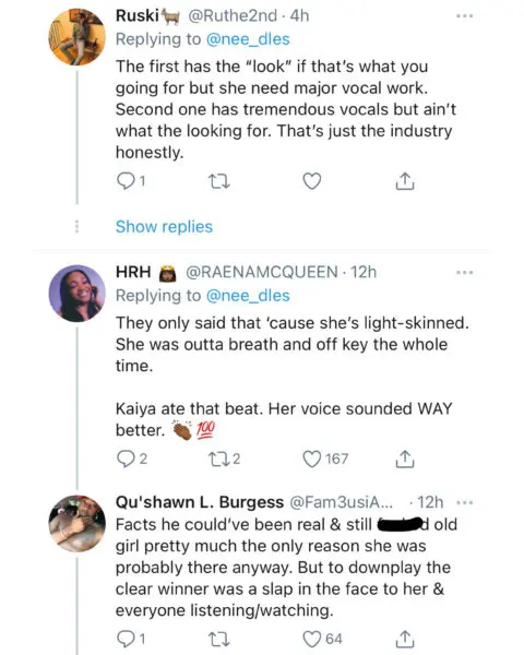 Many social media users expressed that Kaiya had a beautiful voice and the only reason why Just Brittany won was because of her lighter skin complexion and sex appeal.