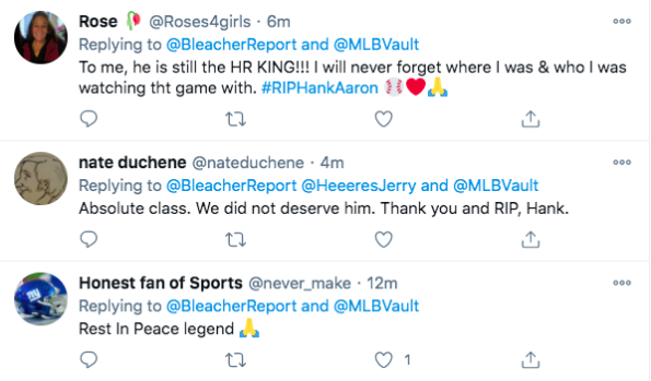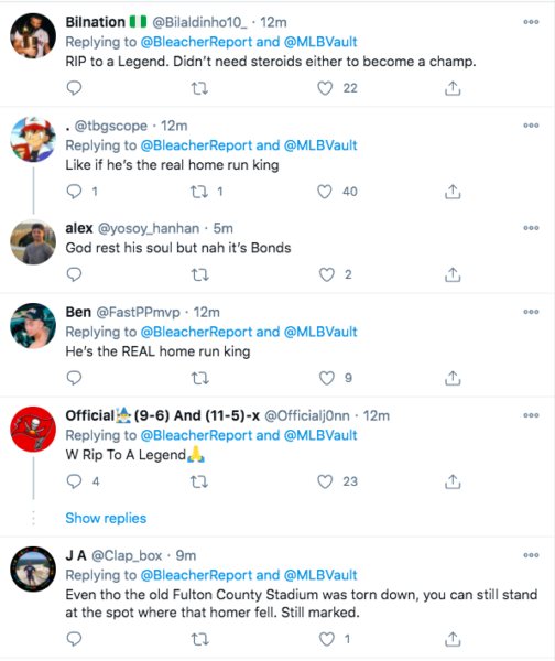 Hank Aaron was famously nicknamed “Hammer” or “Hammerin’ Hank” during his time in the MLB and he played 23 seasons in the league (from 1954 through 1976). During his career, he hit a recorded 755 home runs which stood as the MLB record for 33 years. Hank Aaron still currently holds multiple MLB offensive records. Many fans shared their condolences for Hank Aaron online.