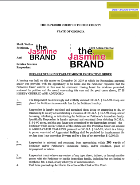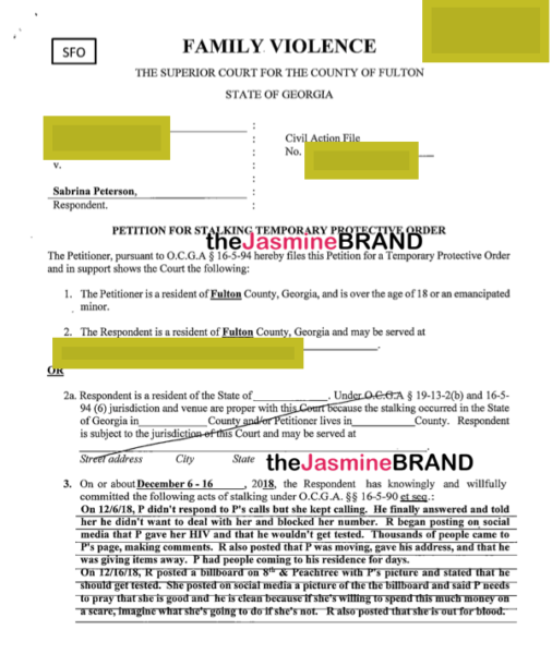 According to court documents obtained exclusively by theJasmineBRAND, Sabrina Peterson has faced multiple legal charges that have resulted in restraining orders. Sources tell us that in the past, a judge has allegedly granted roughly six restraining orders against the Glam University owner. See one court document below.