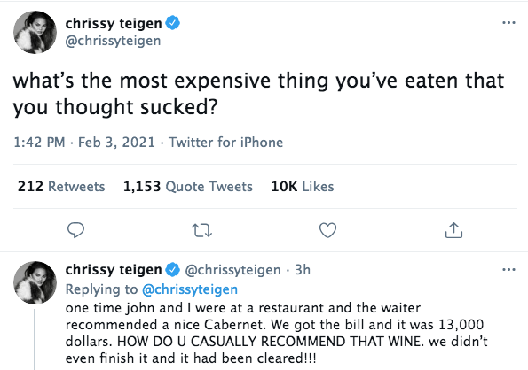 Chrissy Teigen Accused Of Being Unrelatable, After She Tweets About Spending $13,000 On A Bottle Of Wine