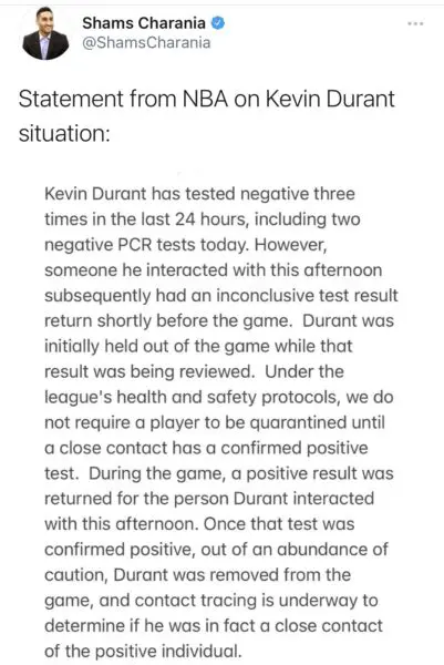 Kevin Durant, who tested positiveĀ for COVID-19 last March, wasn’t too happy with the NBA’s statement and later tweeted,