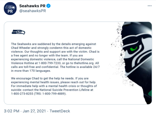 Seattle Seahawks also released a statement on the incident.