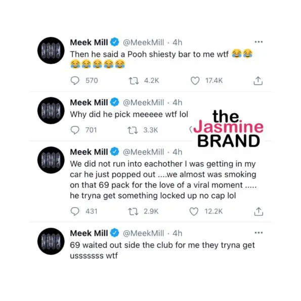 Meek Mill had a few things to get off of his chest as well. In a string of tweets, Meek claims that Tekashi intentionally waited for him outside of the club.