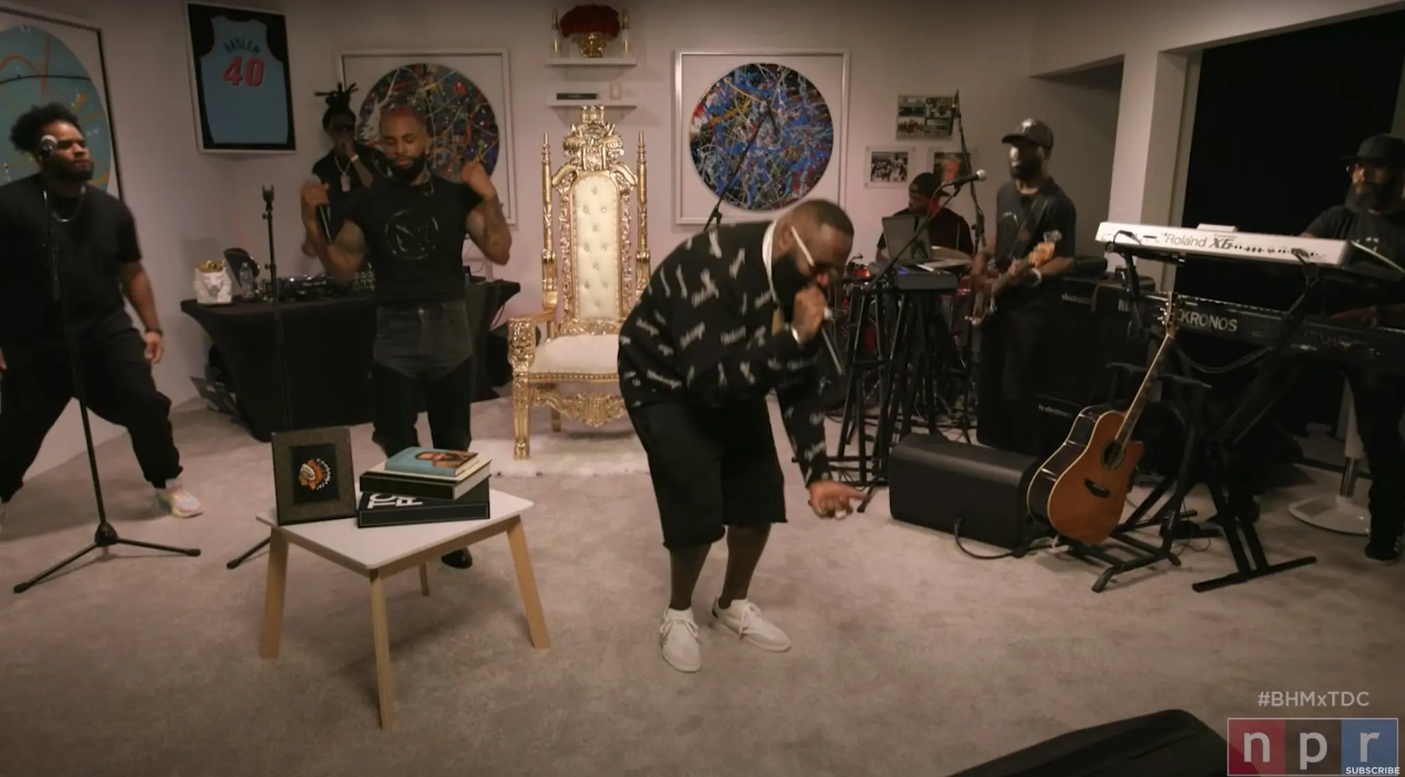 Rick Ross is making headlines, over a powerful performance during NPR’s Tiny Desk (Home) concert. His performance took place in the gallery space of Miami artist Rich B Caliente, The Boss’ longtime collaborator and friend.