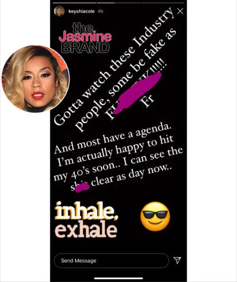 “Gotta watch these Industry people, some be fake as f**k Fr (for real). And most have a agenda. I’m actually happy to hit my 40’s soon..I can see the sh*t clear as day now.”