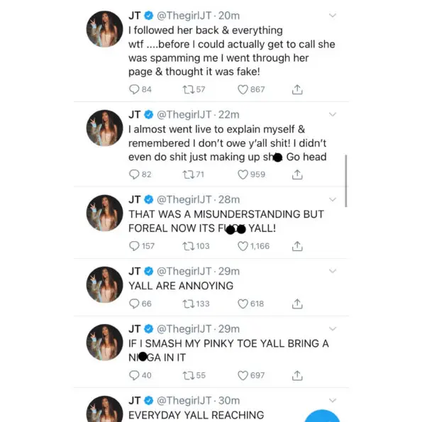 Before deactivating her account, JT explained that she thought Randolph’s twitter account was fake.