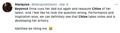 “how amazing is it that @ChloeBailey is already an icon..just popped in to say that ..”
