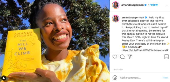 Amanda Gorman became the nation’s youngest inaugural poet when she took the stage at the event in January. She’s gearing up to release a book The Hill We Climb on March 30th.