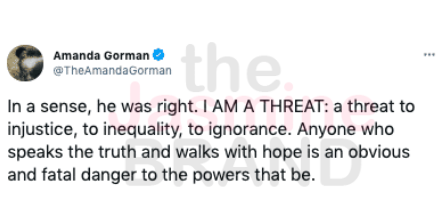 The 22-year-old, who went viral after her inspiring reading of “The Hill We Club” during President Joe Biden and Vice President Kamala Harris’ inauguration detailed the incident on social media.