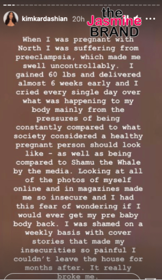 Kim Kardashian took to Instagram and said she received overwhelming backlash when she was pregnant.