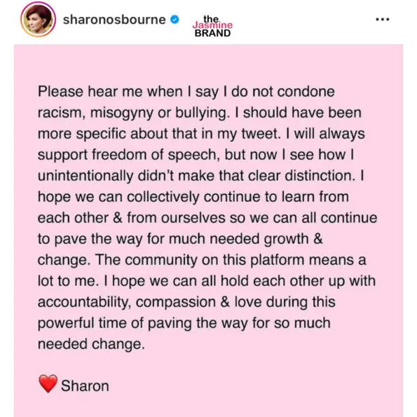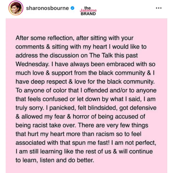 Update #1 (March 12th): Sharon Osbourne has issued a public apology, writing that she,
